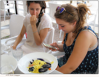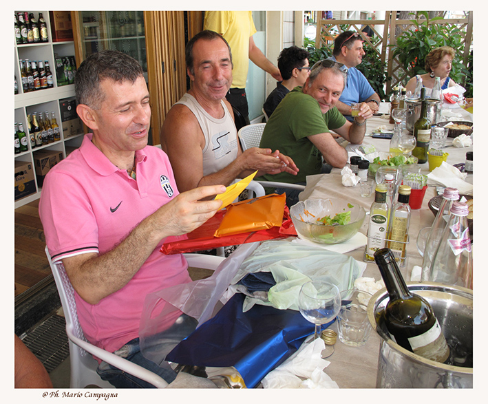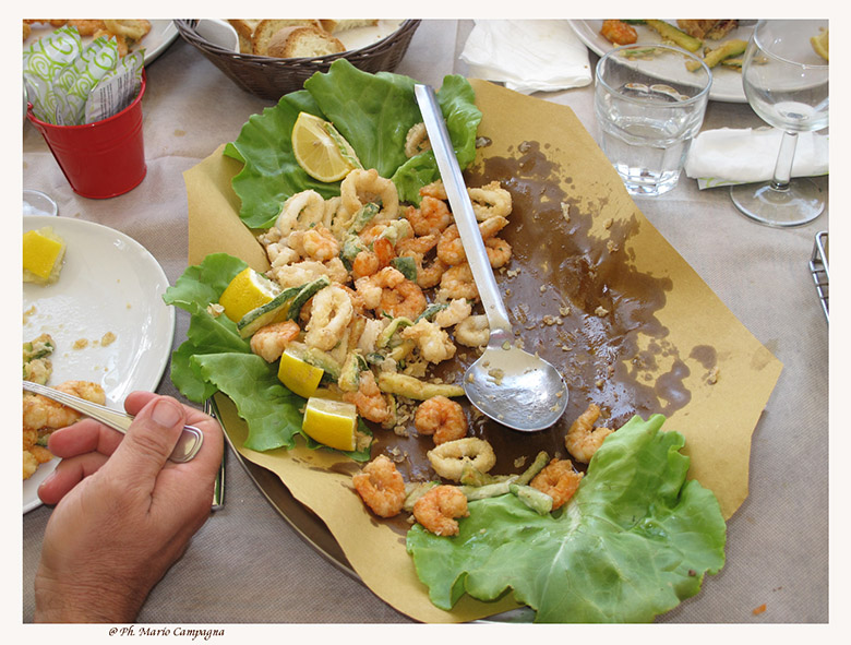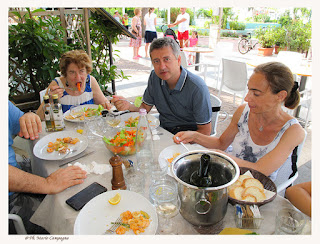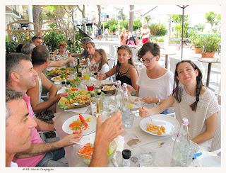 One more and one more birthday has passed...so what?? Well a mixed feeling of becoming more mature???or just older but no problem, as far as another heavy, shattering, tense tourist season is gonna finish in a positive way, as far as God gives us a good health we must be happy and grateful and enjoy every second and every breath of this wonderful life. So what better way to celebrate it if not having a birthday lunch to Caffè Roma where a perfect and professional host like Walter and his marvellous cook Ramona prepared for a delicious fish meal with Tagliolini allo scoglio, mixed salad, fried fish, good white wine, caffè and a strong and scented mirto flavoured grappa.